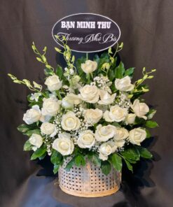 Giỏ hoa chia buồn tone trắng – GV04