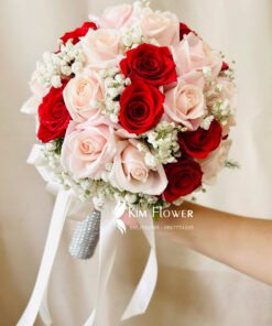 Bó hoa cưới hồng đỏ mix hồng kem – HC002